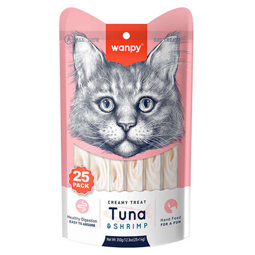 Wanpy Creamy Treat Ton Balık ve Karidesli Likit Creamy Kedi Ödülü 25’li Paket (25 x 14 gr) – Barkod: 6927749871378
