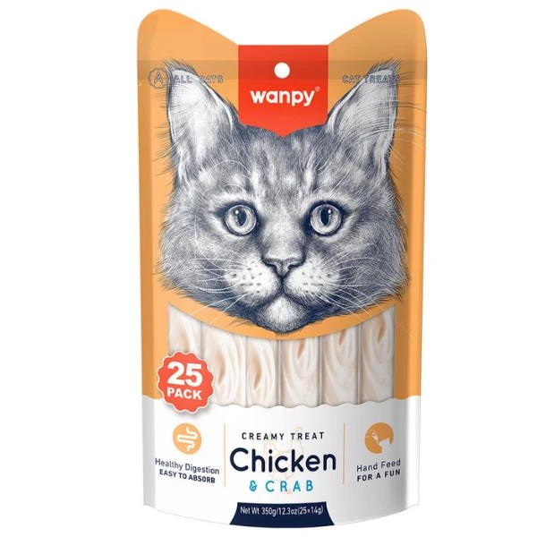 Wanpy Tavuklu ve Yengeçli Sıvı Kedi Ödül Maması 25 x 14 gr – Barkod: 6927749871408