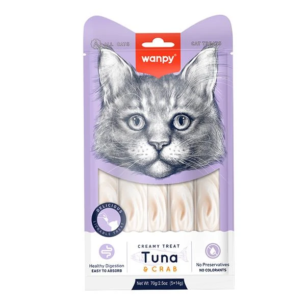 Wanpy Ton Balıklı ve Yengeçli Krema Kedi Ödülü 5 x 14 gr – Barkod: 6927749871200